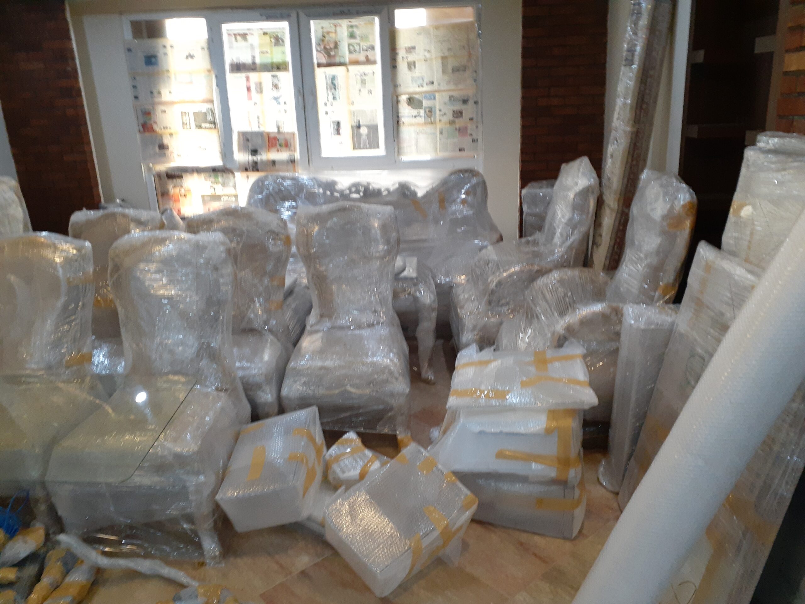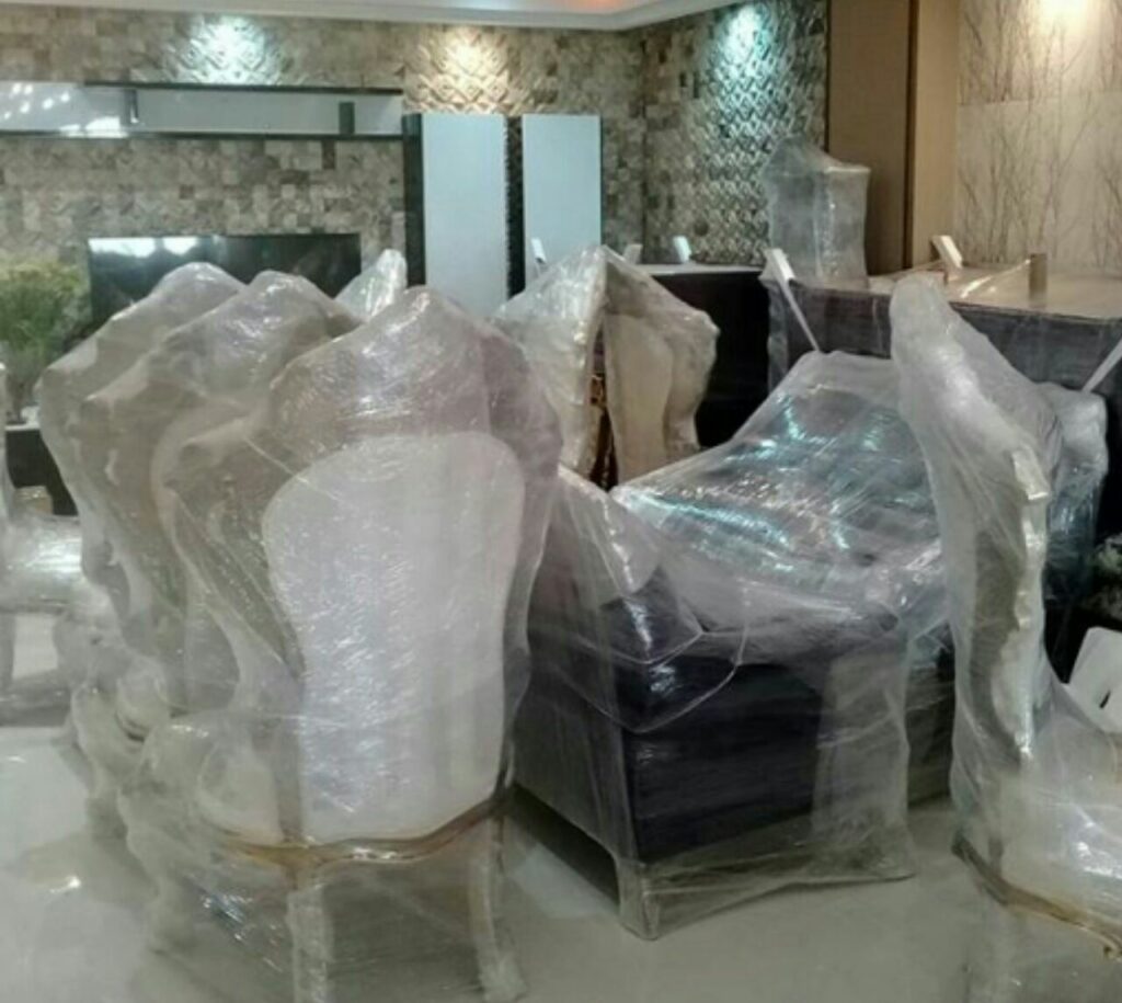 بستهبندی مبلمان با سلفون، استرج و ضربهگیر حبابی